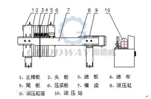 過濾方式 : 濾液流出的方式分為---明流過濾和暗流過濾。明流過濾,每個濾板的下方出液孔上裝有水咀,濾液直觀地從水咀里流出。暗流過濾,每個濾板的下方設有出液通道孔,若干塊濾板的出液孔連成一個出液通道,由止推板下方的出液孔相連接的管道排出。